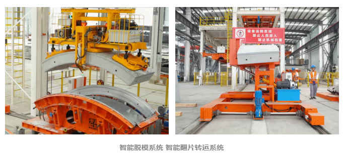 智能脫模翻片轉(zhuǎn)運(yùn)系統(tǒng):針對傳統(tǒng)脫模依賴人工吊裝、效率低、風(fēng)險高的痛點,創(chuàng)新推出全智能脫模轉(zhuǎn)運(yùn)一體化系統(tǒng)??蚣苁浇Y(jié)構(gòu)集成水平行走車、卷揚(yáng)升降與真空吸盤,三機(jī)協(xié)同作業(yè),液壓機(jī)械鎖鉤+鋼絲繩張力傳感雙重防護(hù),精準(zhǔn)控制脫模力度,杜絕管片脫落與模具損傷。翻片機(jī)可移動設(shè)計,無縫銜接脫模與周轉(zhuǎn)流程,無線通訊實現(xiàn)"脫模-翻轉(zhuǎn)-轉(zhuǎn)運(yùn)"全智能化,系統(tǒng)突破傳統(tǒng)行車吊裝模式,消除人工扶正安全隱患,節(jié)省人力90%,適配多種管片規(guī)格,以智能化、高可靠性賦能產(chǎn)線升級,打造零事故、零延誤的預(yù)制構(gòu)件智造新標(biāo)桿。